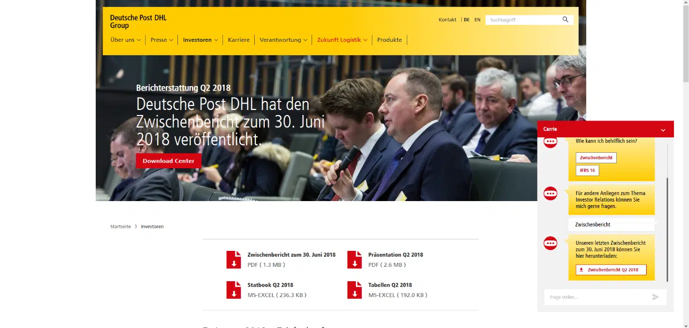 Support und KI-Training für den Investor Relations Chatbot von DHL